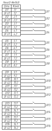 Рисунок 2.7.4 - Схема подключения дискретных/счетно-импульсных сигналов к модулю Мега12-NW16DI