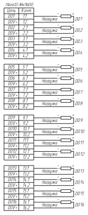 Рисунок 2.8.4 - Схема подключения дискретных выходов модуля Мега12-NW16DO