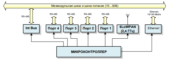 | Диагностика модуля | Индикация состояния и программная диагностика через Web интерфейс по Ethernet или интерфейс RS485 |