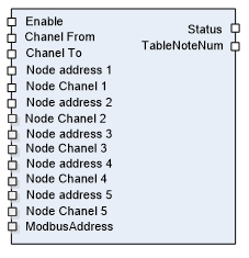 - Вход ModbusAddress может быть массивом до 50 элементов для того чтобы можно было опросить несколько устройств подключенных на одну шину RS485(channel 5).
