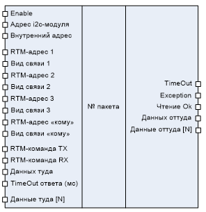 - Входы «RTM-адрес N» и «RTM-адрес «кому»» - адреса и ретрансляторов и получателя пакета. Допустимы адреса в диапазоне от 1 до 4095, кроме адреса 126. Тип входа – int16.