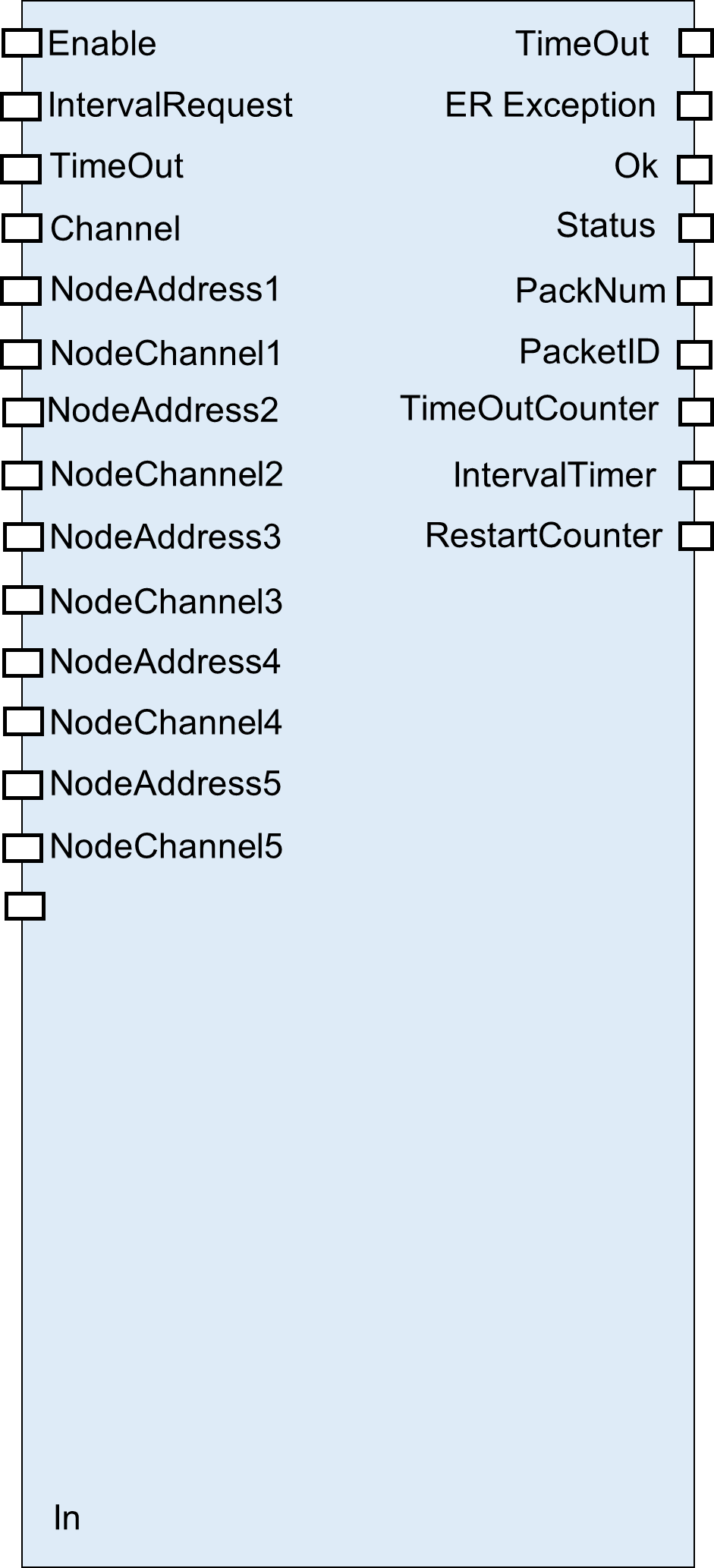 - Внутренняя переменная «№ пакета» обязательна. Она нужна для идентификации пакета в очереди пакетов и корректного отрабатывания истечения тайм-аута ответа и переключения нескольких интерфейсных ФБ на одном канале связи, её тип uint8.