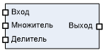 ФБ приводит значение входа к типу float32, а затем умножает его на множитель и делит на делитель. Если множитель или делитель = 1, соответствующая операция пропускается.