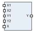 ФБ «Масштаб величины» производит масштабирование по двум ключевым точкам входной вели-чины X в выходную величину Y.