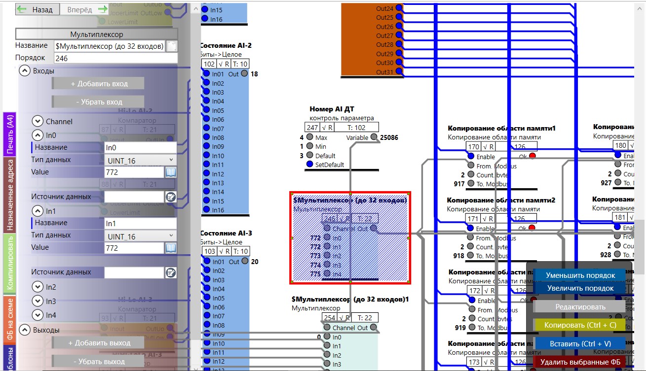 Рисунок 9 - Настройка входов и выходов функциональных блоков